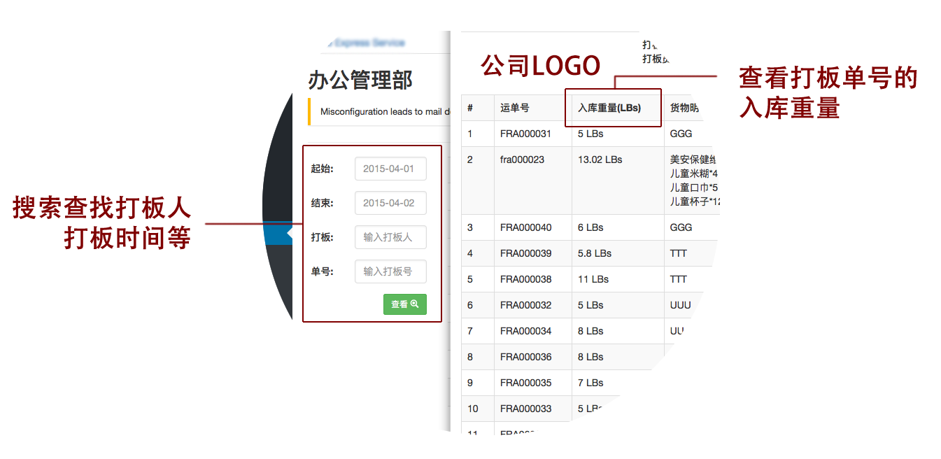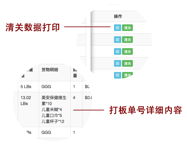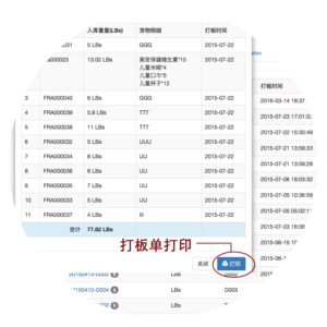 查看每个打板单号的入库重量,搜索查找打板人,打板时间等,支持公司内部打板单号详细内容打印,支持清关数据打印等功能