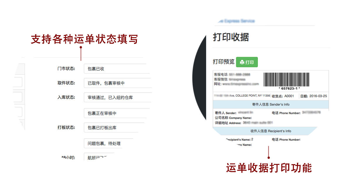 - 运单支持收据打印功能