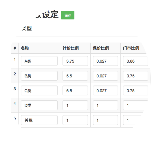 设置各种物品类别计算比例,保价比例,门市计算比例